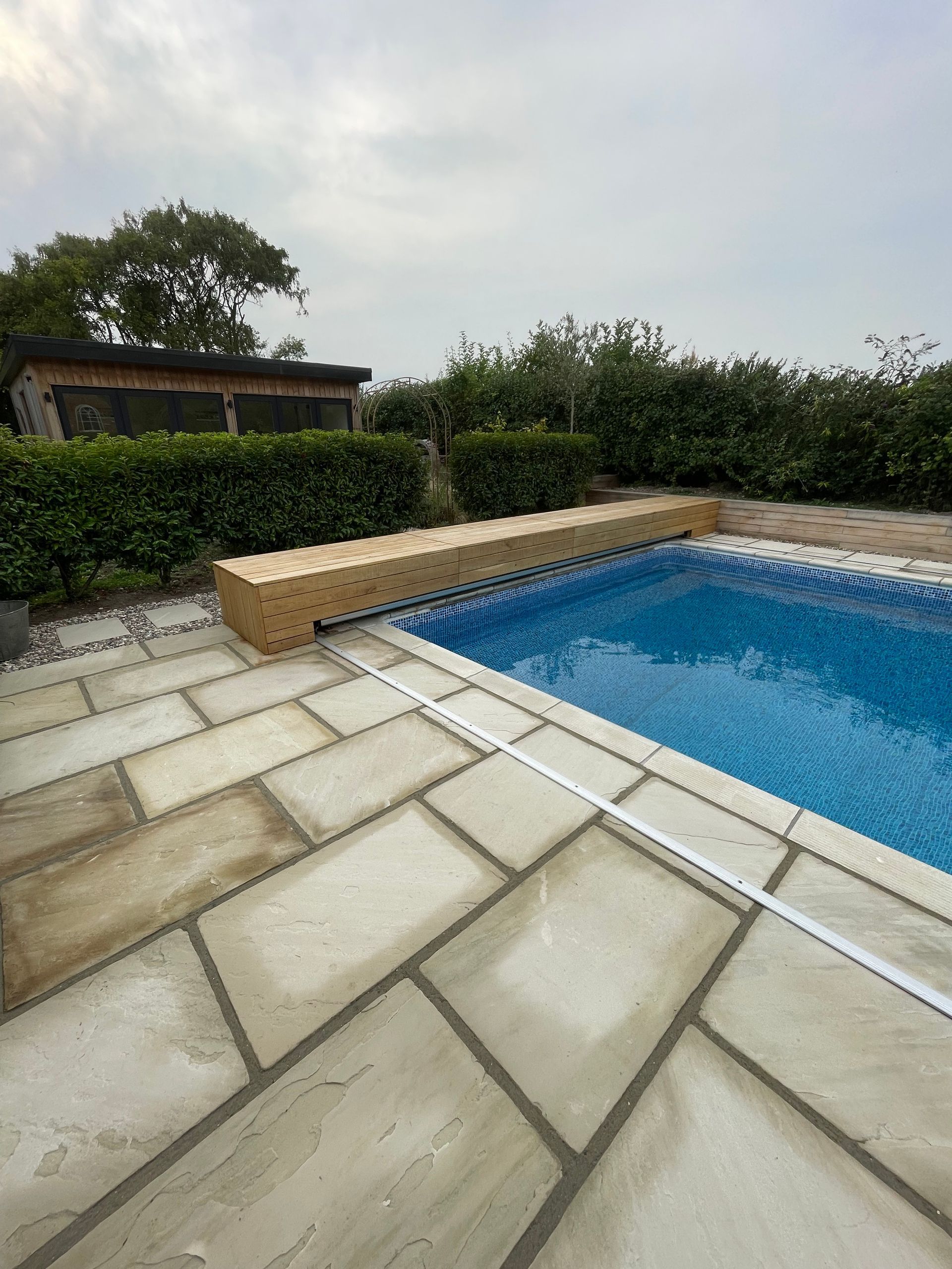 Revamp the outdated and deteriorated flower beds with new, durable oak sleepers, ensuring a lifetime guarantee for long-lasting beauty and functionality. Completely redesign the pool area to transform an underutilized space into a vibrant summer hotspot, maximizing its potential. Additionally, create a luxurious, low-maintenance front garden that complements the property, enhancing both its visual appeal and functionality for everyday use.